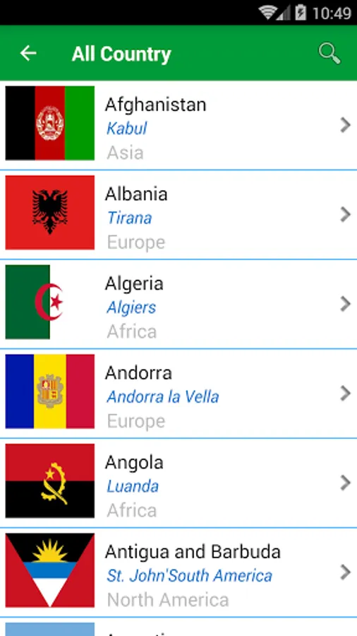 Flags of All Countries of the World easy to find and view a country information any time. Use this app to learn about each country.