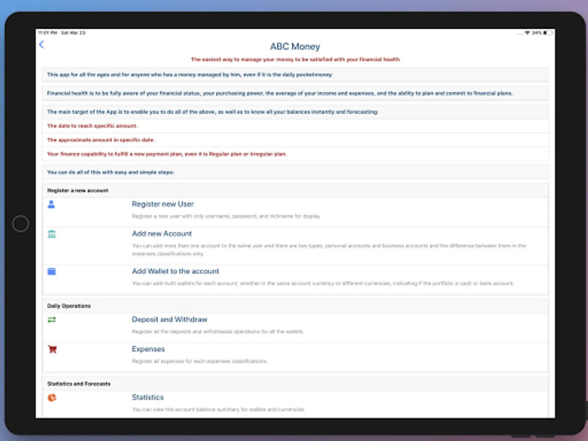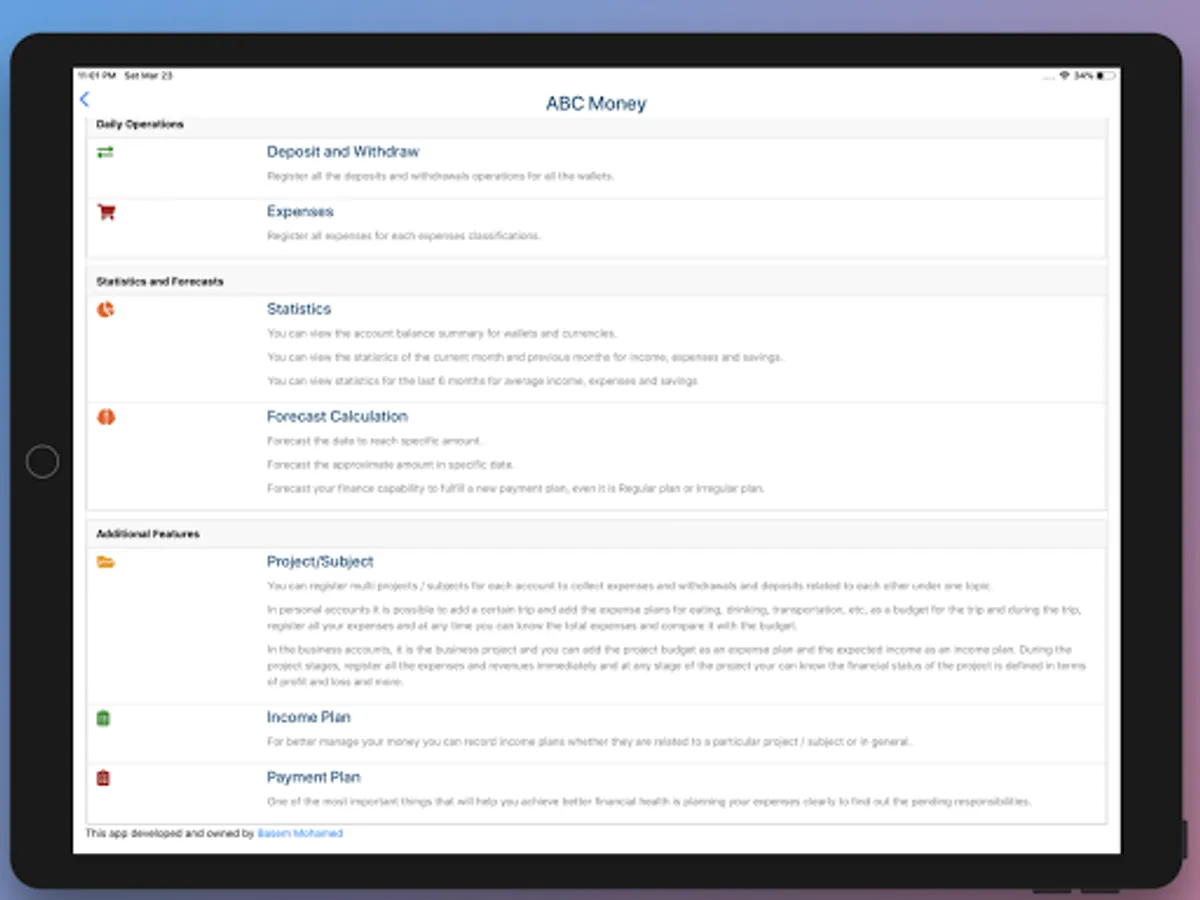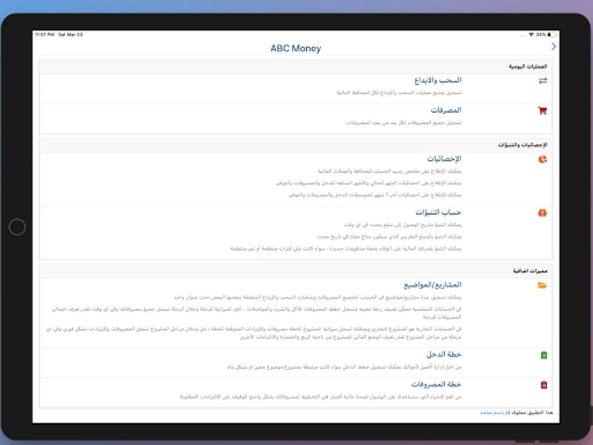 هذا التطبيق لجميع الفئات العمرية ولأي شخص لديه أموال يتحكم بها حتى ولو كان المصروف الشخصي اليومي
