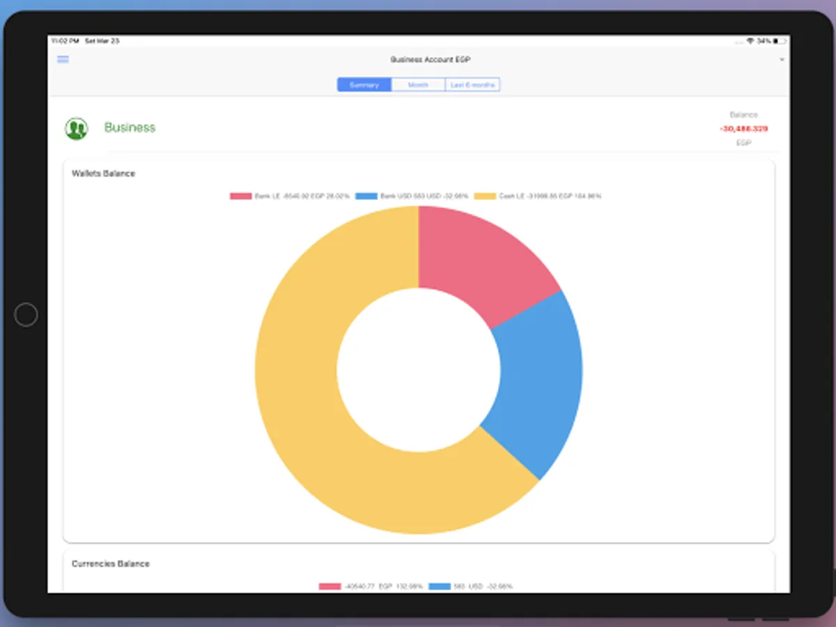 The main target of the App is to enable you to do all of the above, as well as to know all your balances instantly and forecasting: