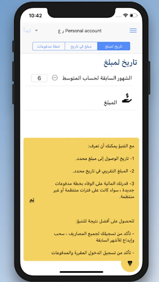 الهدف الأساسي من التطبيق هو تمكينك من كل ماسبق بالإضافة إلى معرفة جميع ارصدتك بشكل فوري والتنبؤ بـ: