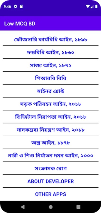 This Apps acquire knowledge for Law student, Police departmental exam, Bar Council exam, BCS exam and Law admission exam.