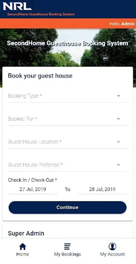 This application will facilitate NRL employees for online booking/cancel/view of NRL Guest Houses/ Transit Accommodations from their mobile.