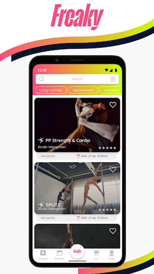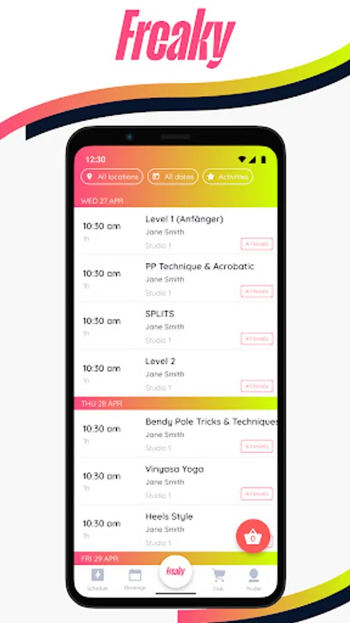 Entdecke den Polesport mit unserer eigenen FREAKY App. Verwalte deine Kursbuchungen und Anmeldungen mit Leichtigkeit und bleibe immer auf dem neuesten Stand.