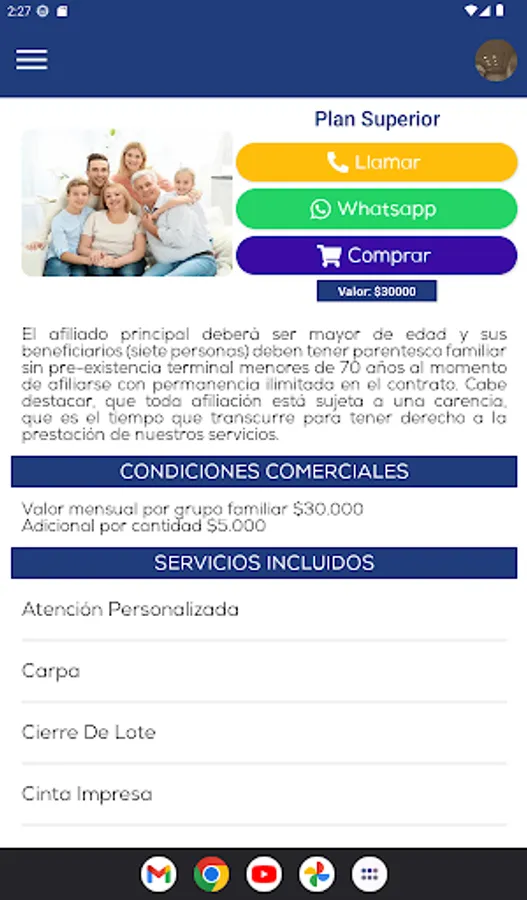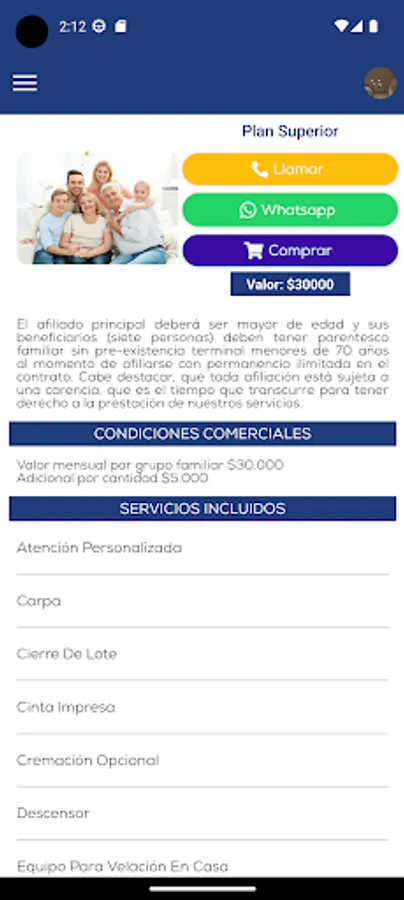 Application that allows our clients to check the status of their contract, make payments to them or join if they are not. It also allows them to learn about the plans we offer, be contacted in an emergency, and set up a simple profile to stay up to date.