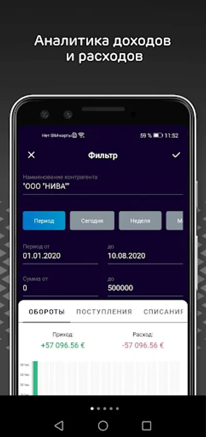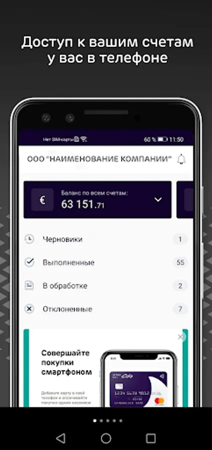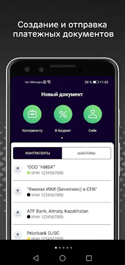 The application is available as an information and payment service for users connected to the Ak Bars Business Online and Ak Bars Business Drive systems in three languages (Russian, Tatar, English). You can familiarize yourself with the functionality in advance, see the demo mode.
