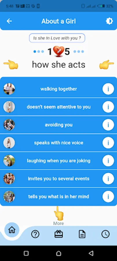 It is the recognition app to a person who you have close relationship with specifically two different sex, whether a friend, boyfriend/girlfriend , fiance/fiancee or bride/groom via question tag (?).