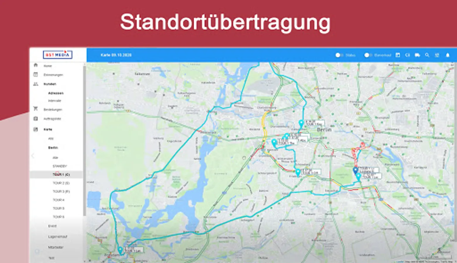 Furthermore, with the location transfer you can find your driver at any time and always know how long he will need to get to the next customer.