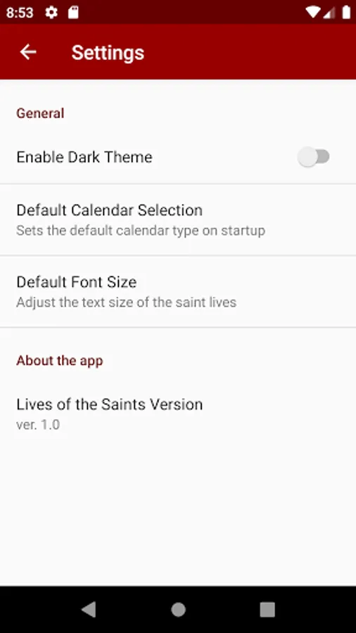 Favorites management, to easily add to (for quick and easy access) or remove from the Favorites list any Saint or feast day.