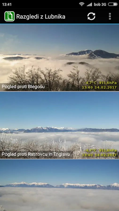 The program allows you to quickly and easily view an image from all 6 cameras on Lubnik. Images are automatically refreshed as we move between them, and manual click refresh is also available.