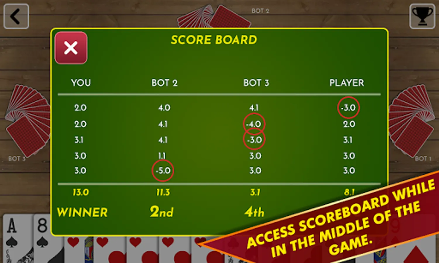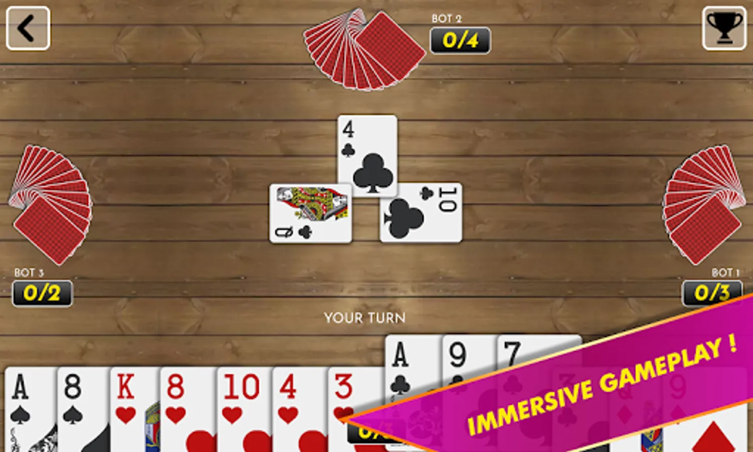 CallBreak Card game is very similar to Spades. It is a multiplayer trick-taking card game played by 4 players.