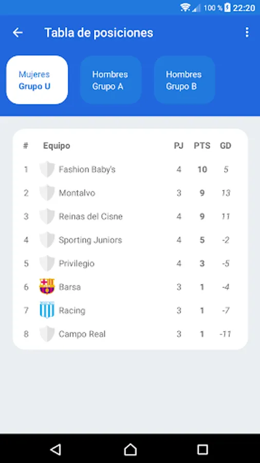 Application that allows you to see complete information on results, tables of positions and data on soccer championship players and others.