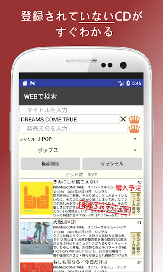 ● Search for CDs on the WEB and display "Registered" for registered CDs.