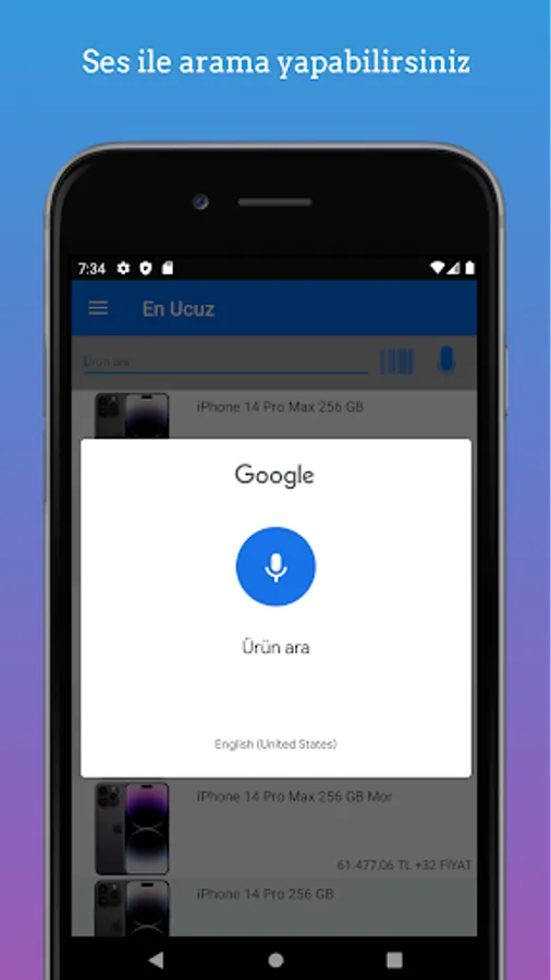 With the voice search feature, without having to type the product you are looking for, just say it out loud to your phone.
