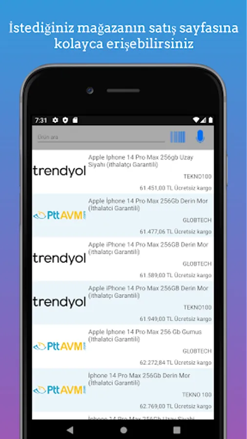 You can immediately find what you are looking for by typing the name or brand of the product in the search bar. You can find vendors, prices and shipping information on the screen that appears.