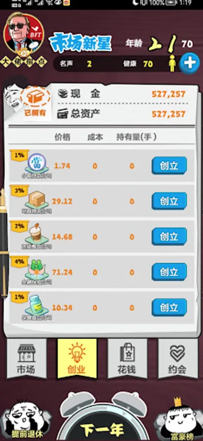 Game goal: make a fortune before retirement, for example, earn one hundred million