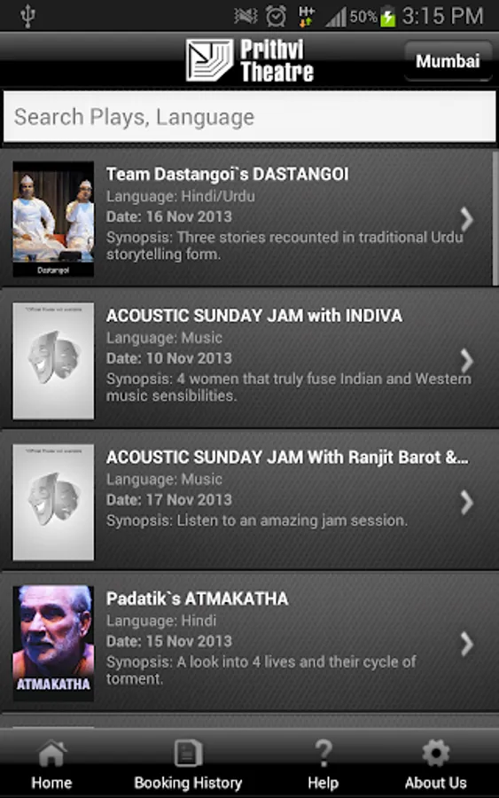The new Prithvi Theatre application is now available absolutely free. Get plays listings, check showtimes, and buy tickets directly from your phone. Also, Prithvi Theatre supports multiple payment options which is 100% secure.