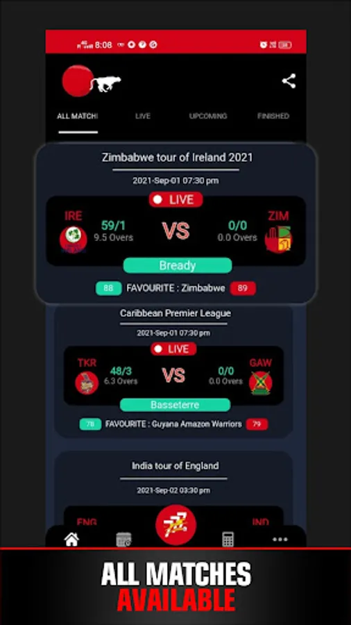 🎬 Coverage of all International T20s, ODIs, TESTs, Tours, Leagues