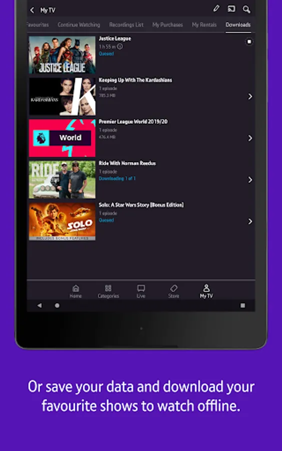 BT TV customers can use the app to watch live channels and shows on demand in line with their TV subscription via smartphone, tablet and laptop wherever they are. All at no extra cost as part of your BT TV package.