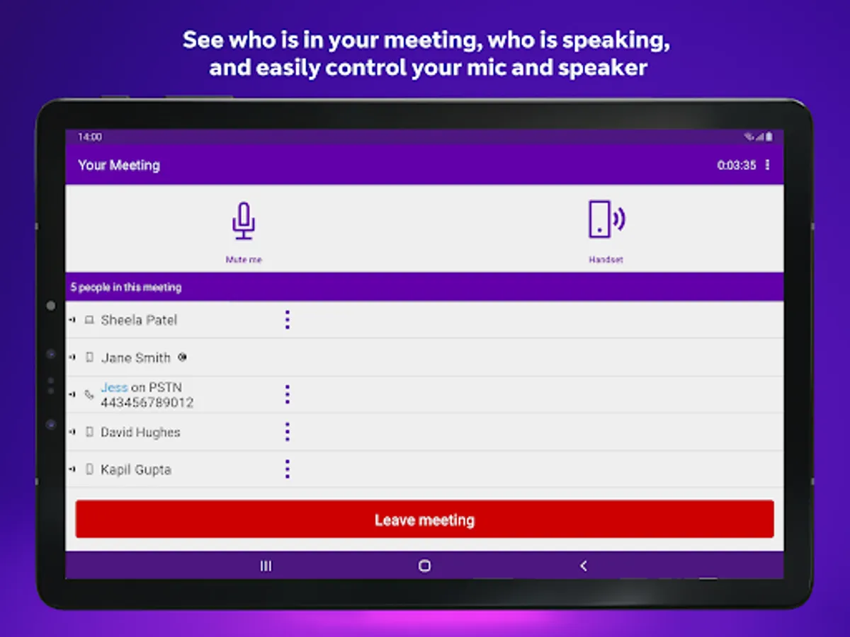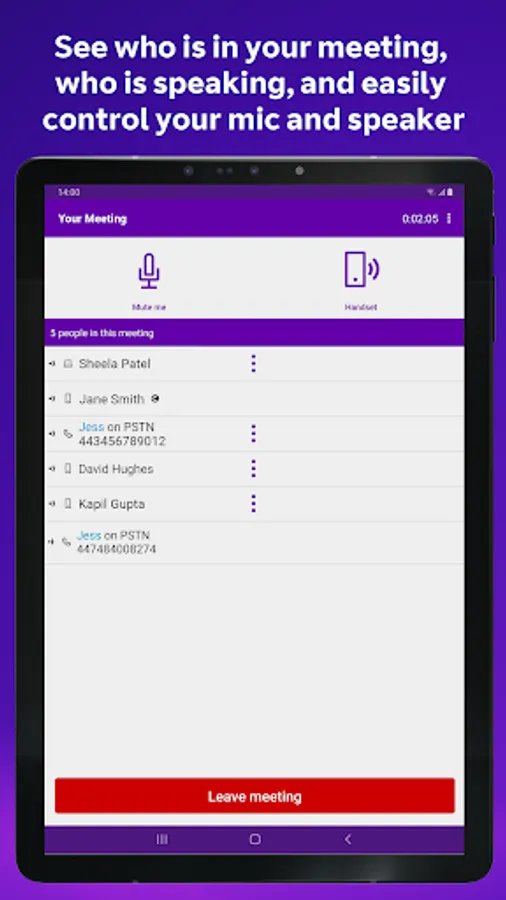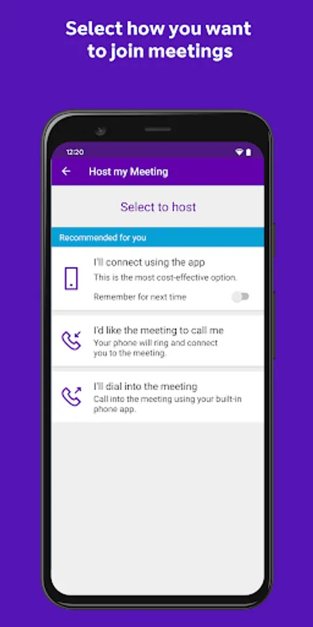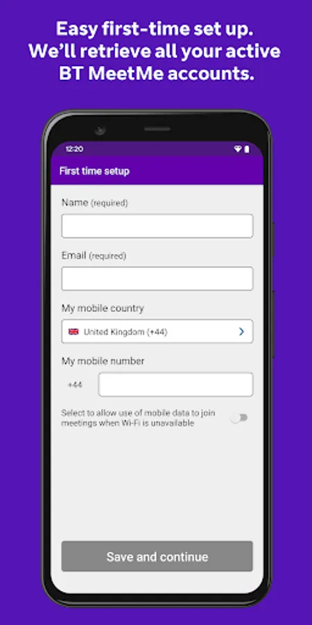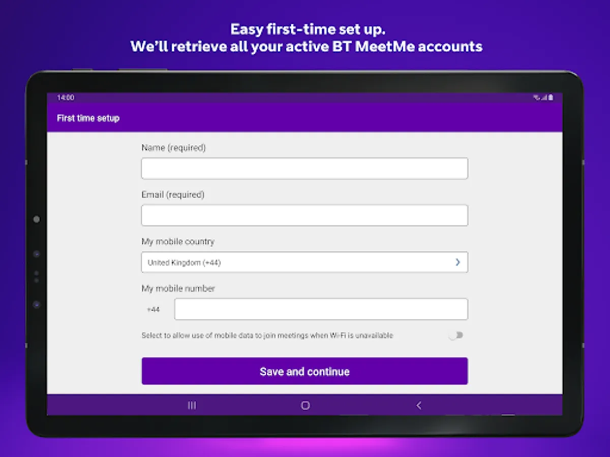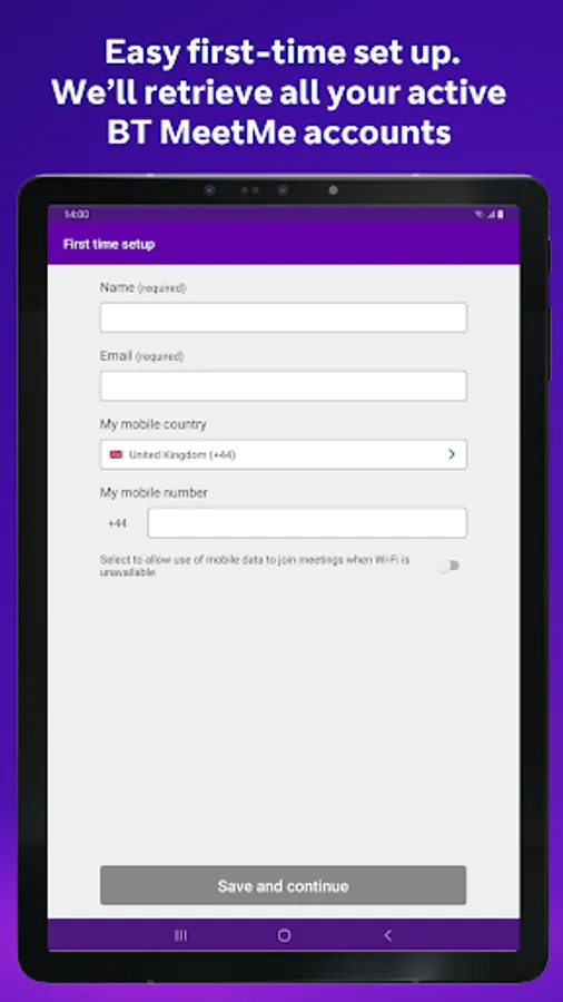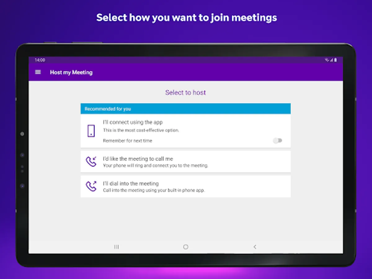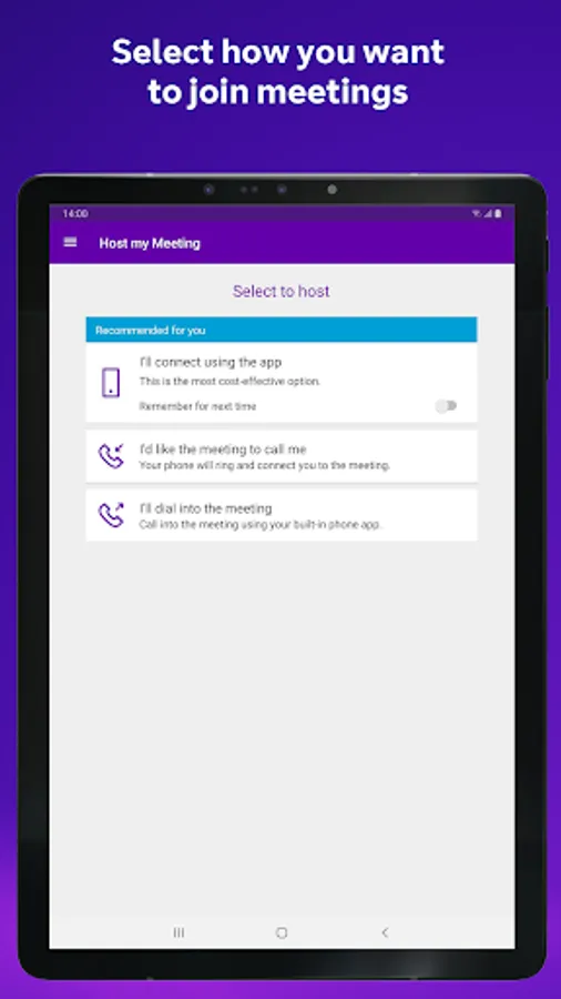 • Save your chairperson BT MeetMe account details so you can just tap to start a meeting