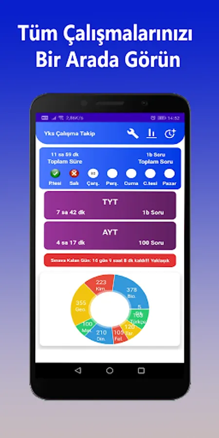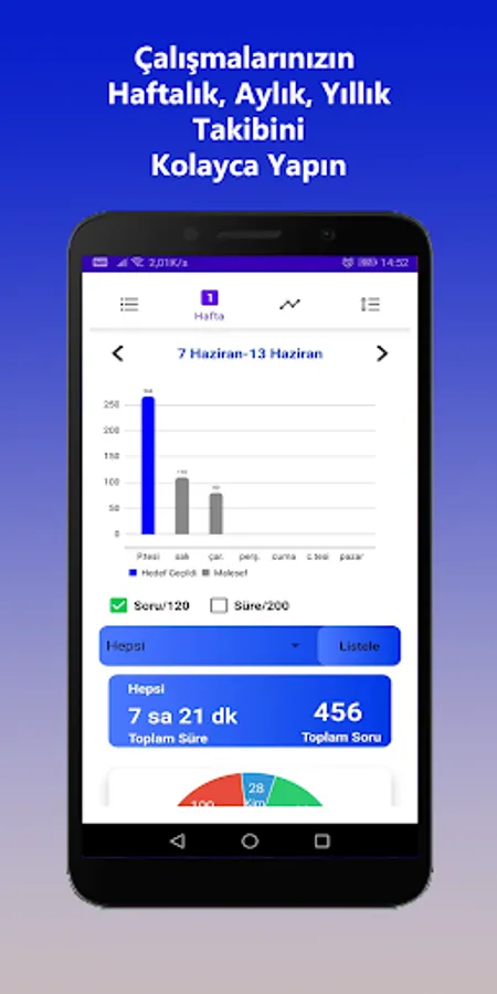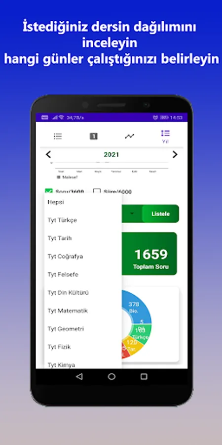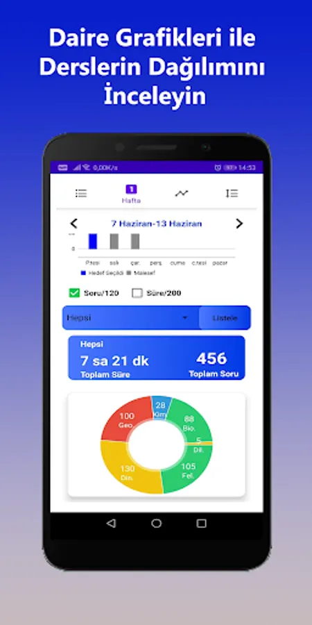 Review your individual days with column charts. See the distribution of your lessons with the circle graph. We wish you good work...