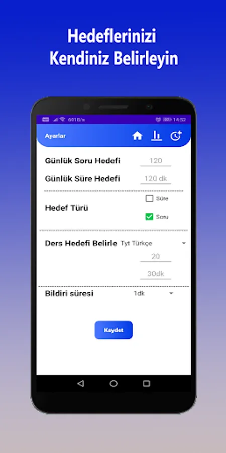 You can set a daily question or time goal and set limits for yourself. You can change the target of the courses you study more.