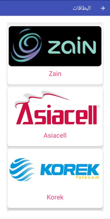 Telecommunications cards Zain Iraq, Asiacell, Korek, Iraqcell, Nawras Network for digital broadcasting, Sumer Network for digital broadcasting, MasterPay cards