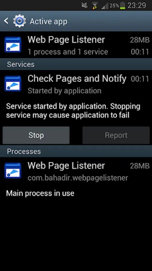 This application will listen continously the demanded urls at the time intervals that you choose from settings.