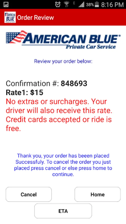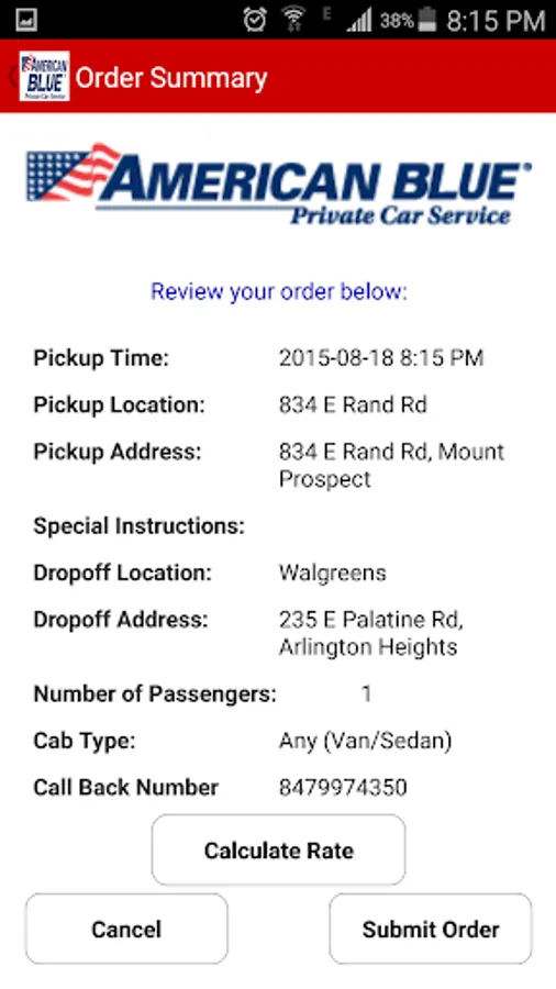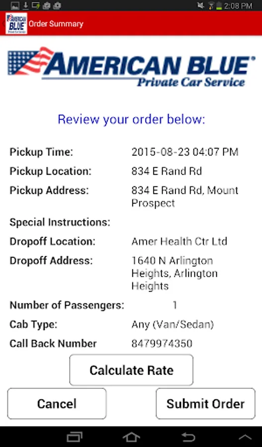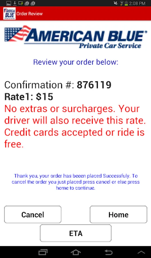 This free app allows you to order, track your car, pay for your ride and rate your experience, all through the app. Your commonly used locations are stored in your profile for fast, easy ordering. Orders need to be placed two hours in advance.