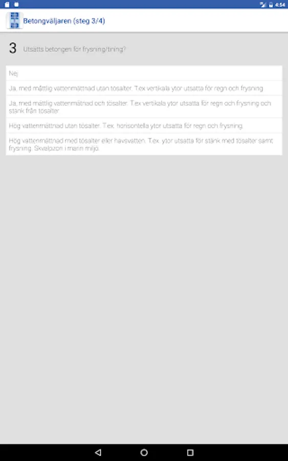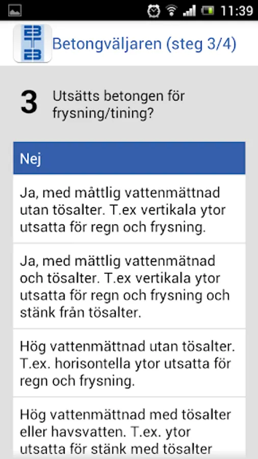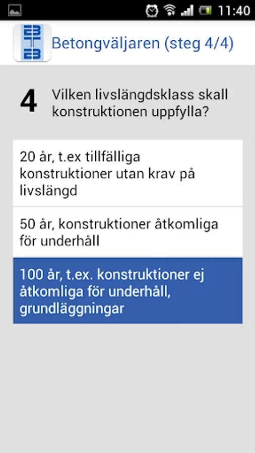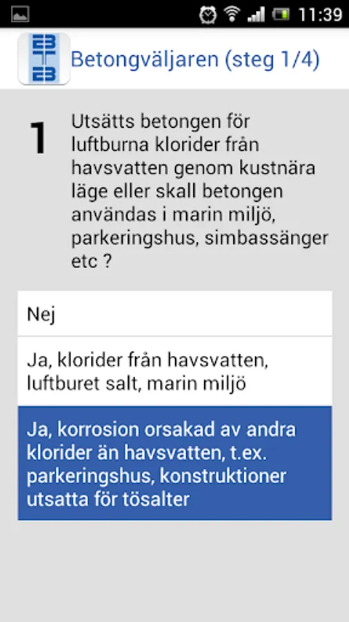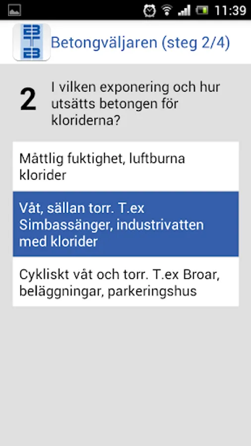 BTBs concrete voters is an app that through a number of questions may determine the exposure class, the concrete will be exposed to and thus the concrete quality and composition required. The result should be seen as a council and a more detailed analysis should always be done in connection with the project.