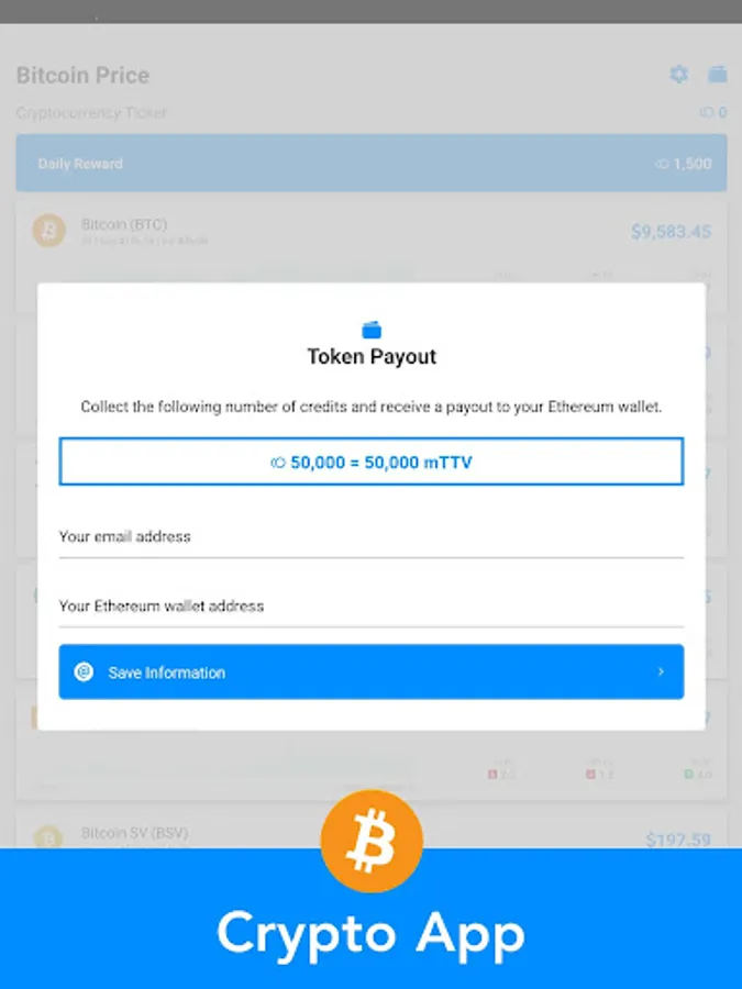 Clearly, it is time to invest in crypto. Bitcoin Price is your everything crypto companion. If you are seeking a crypto converter or crypto exchange to trade your BTC, XRP, EOS, Tether, Litecoin, BCH or Ethereum, we are happy to suggest one of our trusted crypto partners. To accelerate your first steps in the crypto world, we offer crypto rewards on Bitcoin Price. The crypto app is the first of its kind to combine bitcoin stats with rewards apps. You check the crypto stats and earn crypto while doing so. Cryptocurrency is the cash of the future. In consequence, you earn money rewards while checking your crypto investment. Join the cryptocurrency ride now!