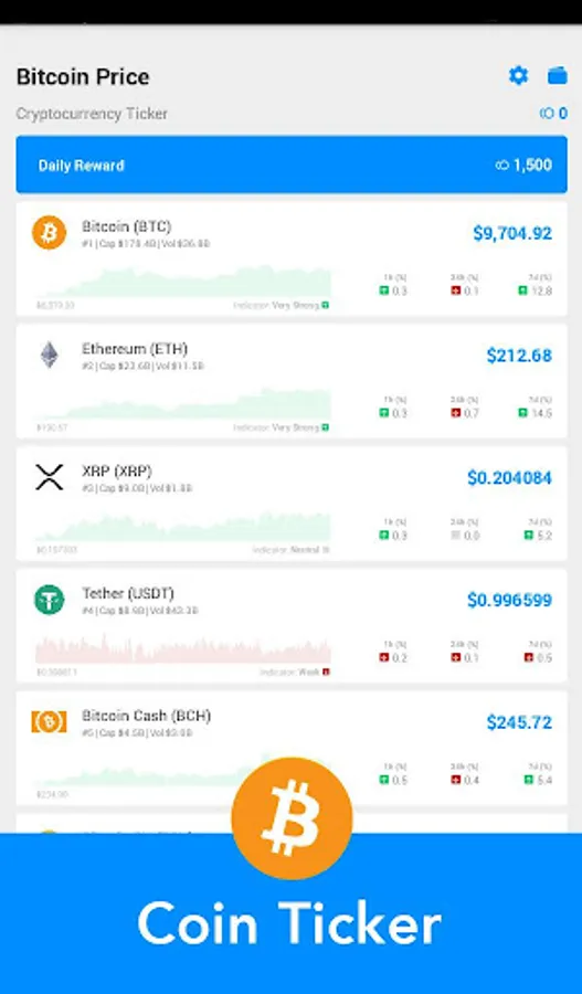 Bitcoin Price: Your BTC Coin Ticker Crypto App is the answer! Bitcoin Price is a crypto app which works as your personal coin ticker. Bitcoin is the future of money. Make your bitcoin investment and track the current bitcoin value easily. Make it your routine to check the bitcoin rates on Bitcoin Price. Of course, this is not a limited bitcoin app. Bitcoin Price has all the crypto charts at your fingertips. You do not only get bitcoin news but a coin ticker that covers the entire world of cryptocurrency. Other coins next to BTC include XRP, EOS, Tether, Litecoin, BCH and Ethereum. It is a complete crypto list for all your crypto currencies. You can do your crypto compare, receive crypto alerts and read the crypto news. Every crypto lover needs a crypto tracker!