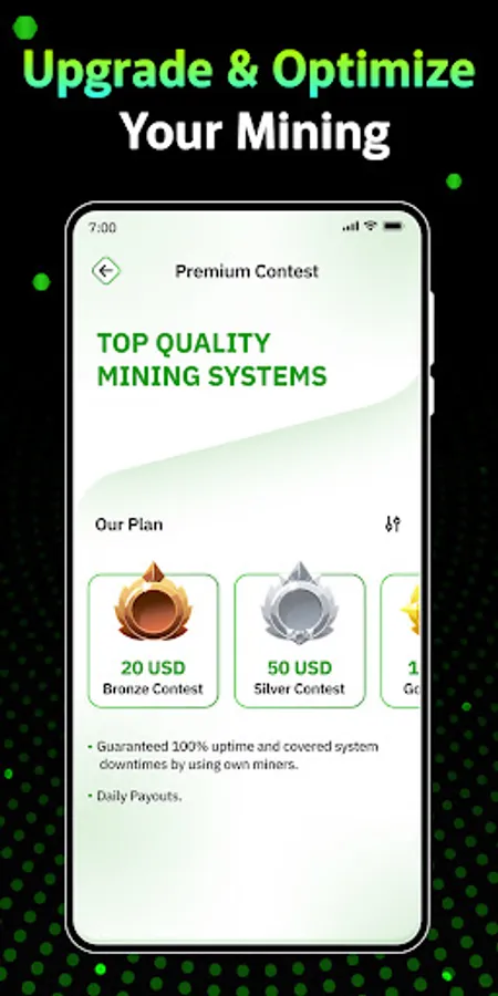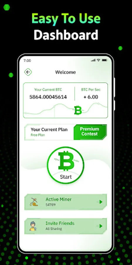 - Start free BTC cloud mining with single tap.