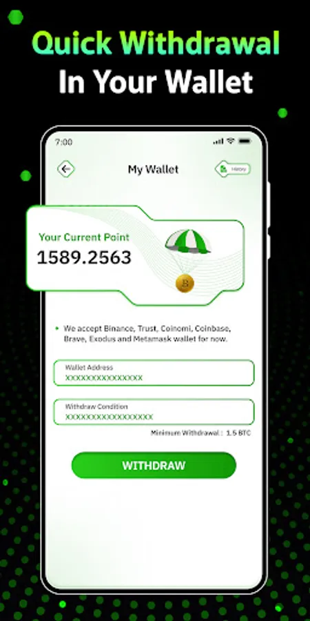 - Wallet and Withdraw coin system.