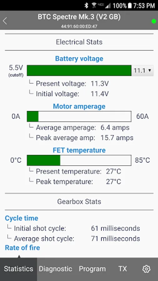 - Displays timing of shot cycles and RoF to assist with fine-tuning AEGs to desired performance.