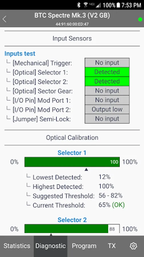 - Diagnostic functions display in real-time which sensors are engaged and a log of previous errors.