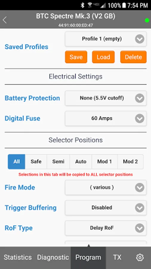 - Save and load multiple profiles to conveniently swap between settings or transfer them to other AEGs.