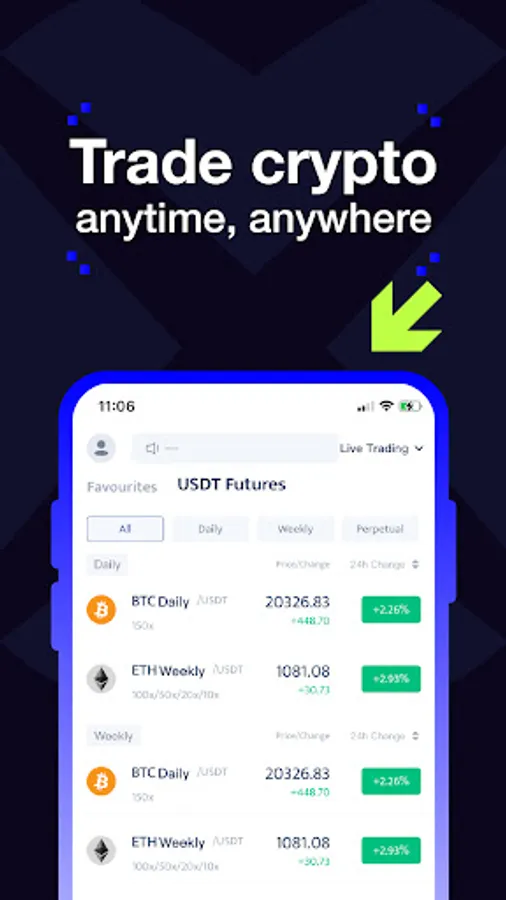 • Trade anytime, anywhere—Access the crypto market 24/7 with our app.