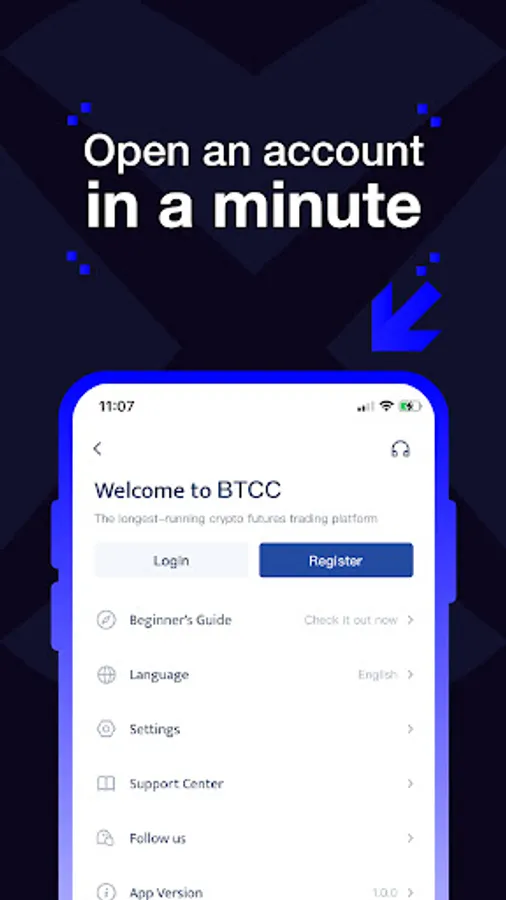 • Fast registration—Open an account in just a minute! You can even use third-party login options like Facebook and Google for easier access to your BTCC account.