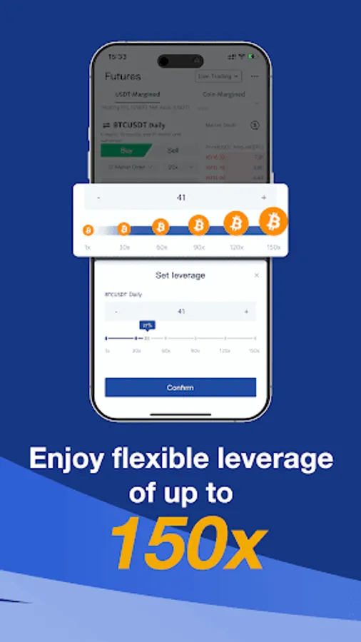 In addition to the major digital currencies like BTC, ETH, BCH, LINK, LTC, ADA, DOT, EOS, XRP, and UNI, you can also trade DASH, DOGE, SHIB, FIL, XLM, XMR, GRT, RNDR, EGLD, and KLAY on our platform. We offer flexible leverage up to 150x across daily and perpetual contract types, allowing you to adjust your positions to meet your trading needs and goals.