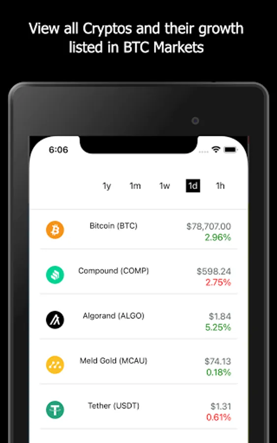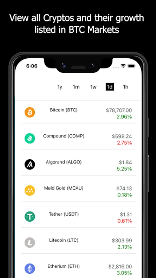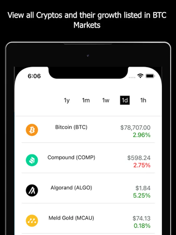 This app provides live data on all the cryptocurrencies listed on BTC Markets exchange (AUD pairs).