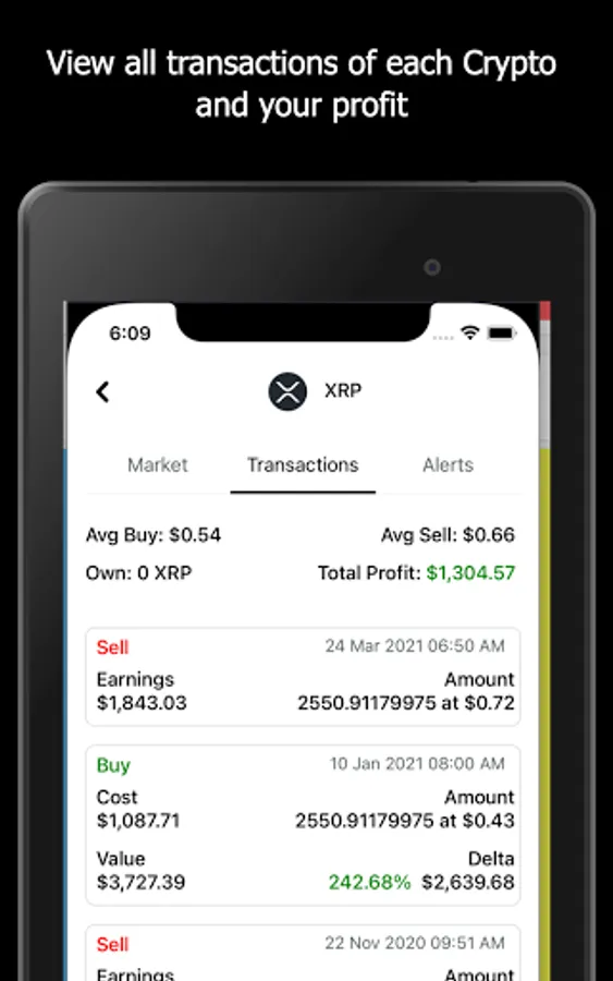 None of your transactions our stored in our servers!! We get the data live provided by API and display it to you.