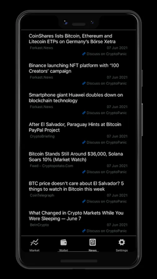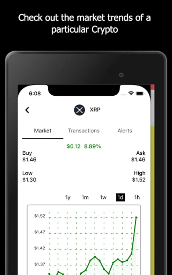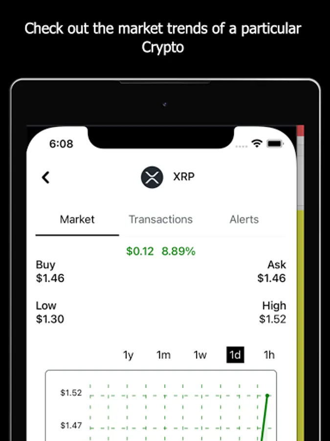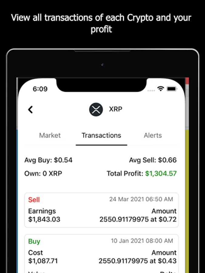 Market trends, and the market change over a year, a month, a week and a day can be viewed. Wallet balance, your past transactions. Overall profit for each coin.