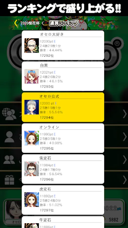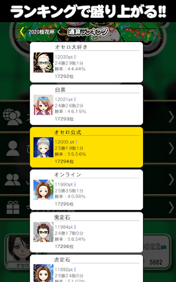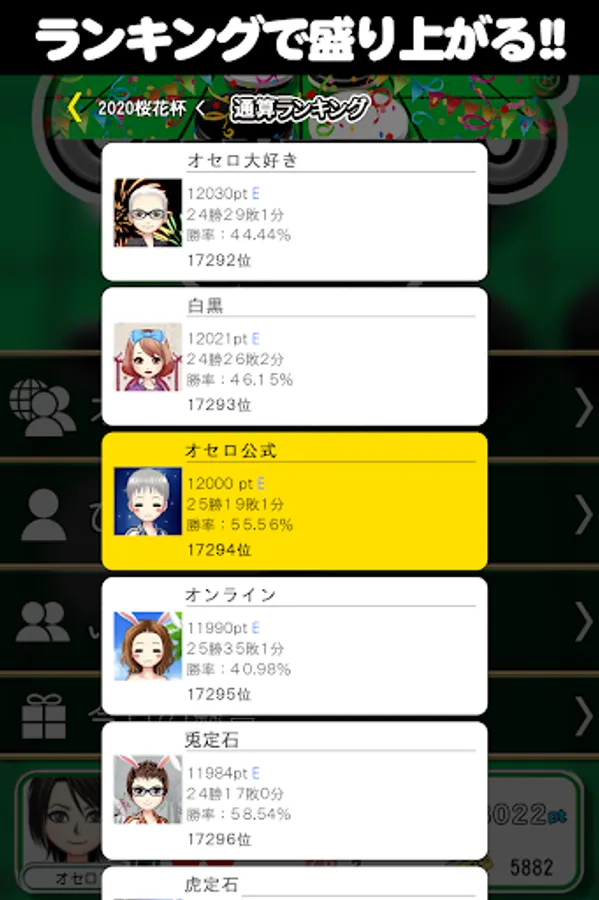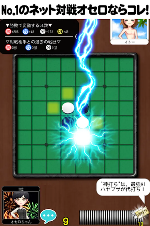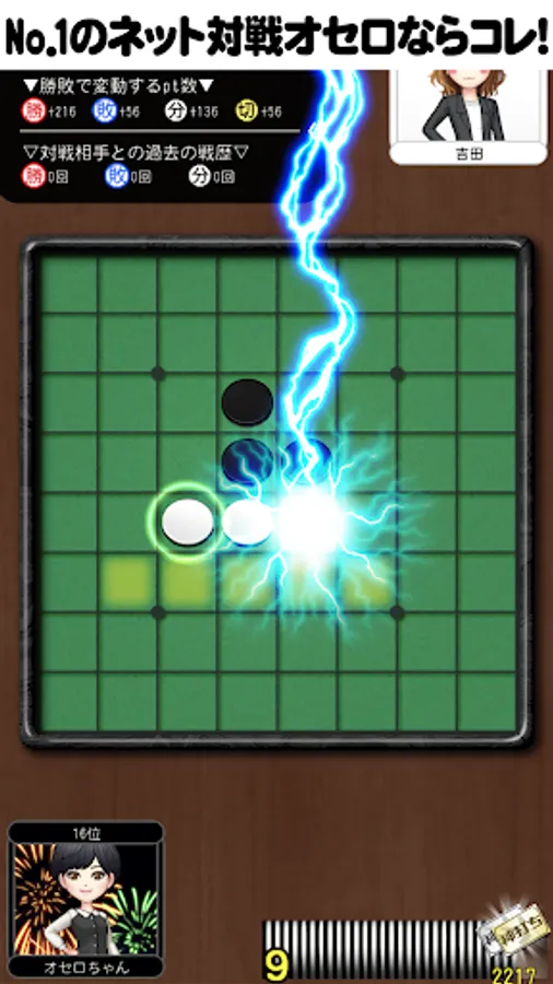 Supports 1 player mode, 2 player mode, and online battle mode! You can enjoy Othello tactics in real time with players and friends from all over the country. Plan your strategy and toy with your opponents to win. A thrilling battle is waiting for you to test your Othello skills.
