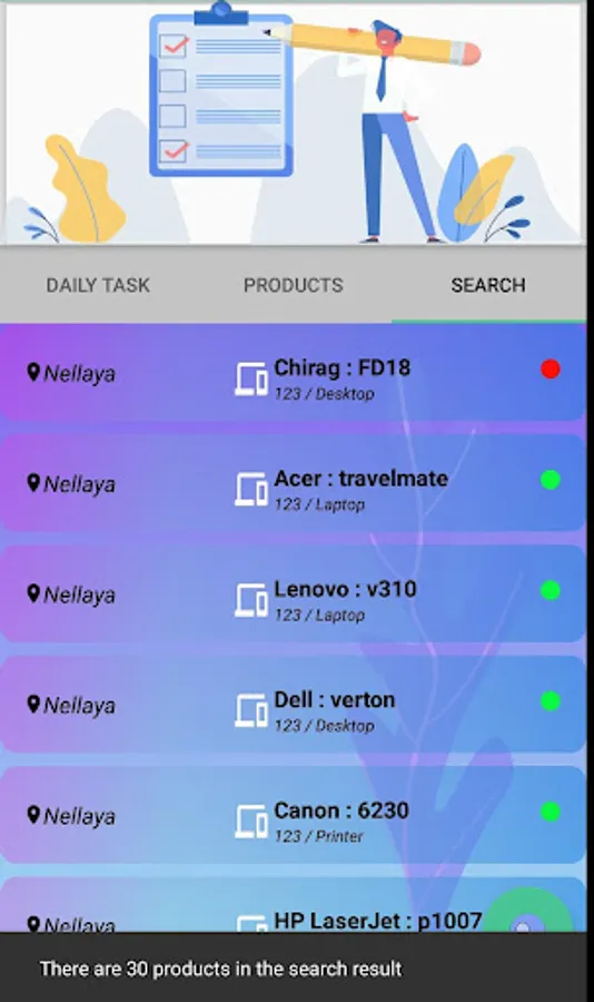 Searching products based on status, model and make along with district or thaluk wise sorting.