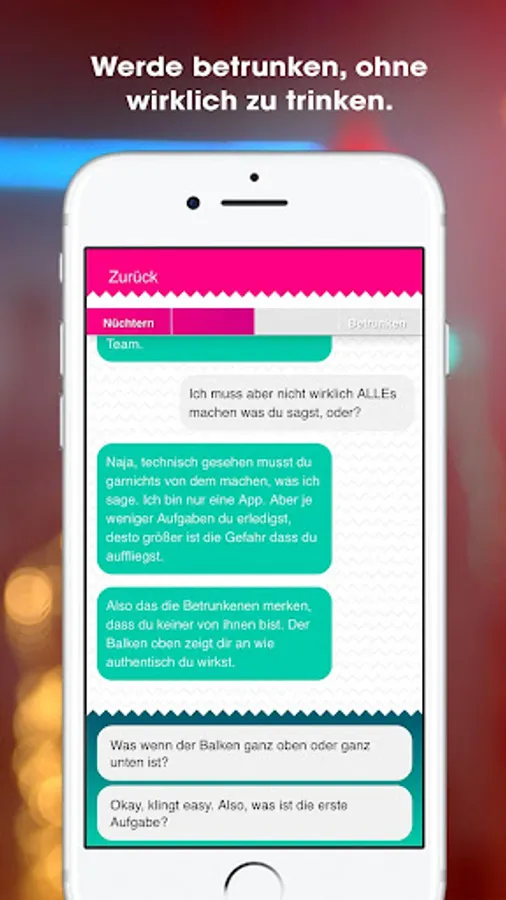 Everyone who has ever been sober at a party know this: You will be put under pressure, is considered uncool and simply is not among them. With Appstinenz, the text venture of Good Work original that is to change. The app tells you what you must do to be included in the dedicated community of drunks. The typical pattern of behavior of drunks are being targeted, in which everyone who has attended celebrate again finds. And all without a drop of alcohol.