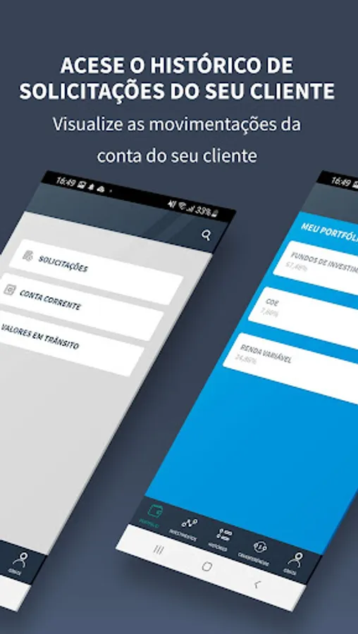 Among the features of the application are the generation of security tokens, account selection, market position, current account history, request history, values in transit and access permissions, thus ensuring that the autonomous agent has a mobile option to verify your customers' movements in real time.
