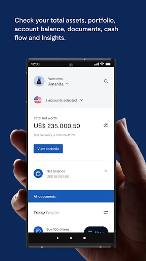 Check information related to your portfolio, account balance, insights, reports, transfers, and consolidation of accounts and activities. Get a complete view of your investment portfolio, including your position in each asset and charts of historical movements and prices. Consult and download your statement and other documents related to your account.