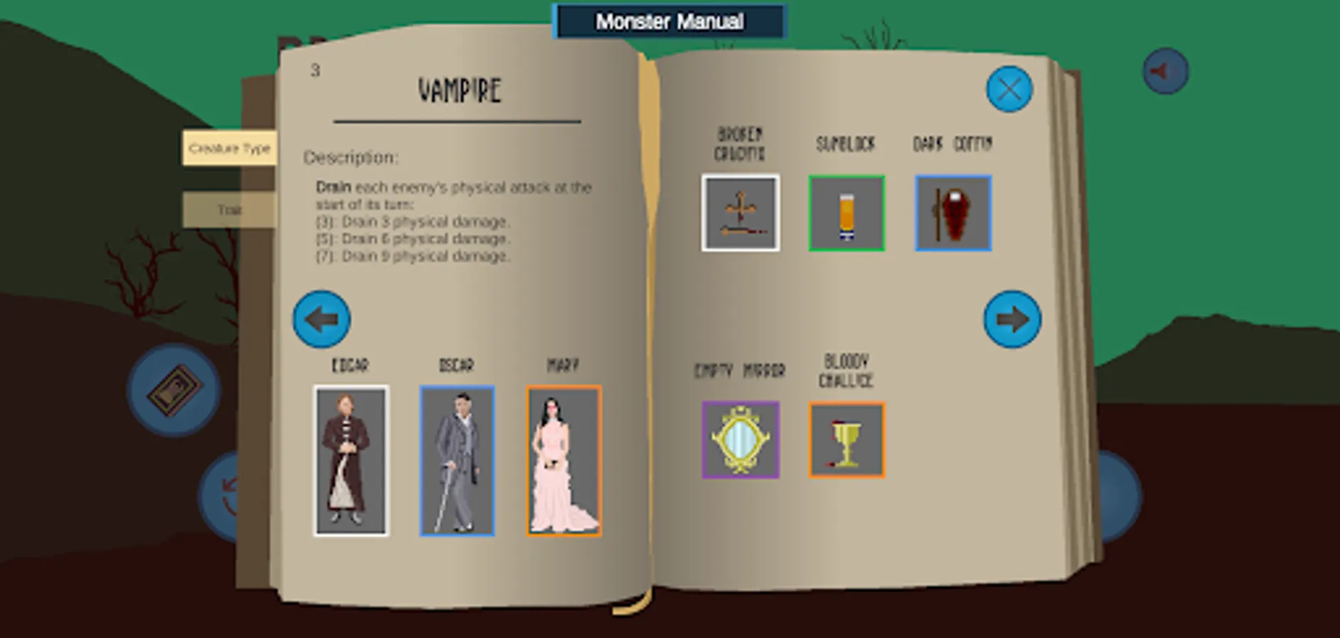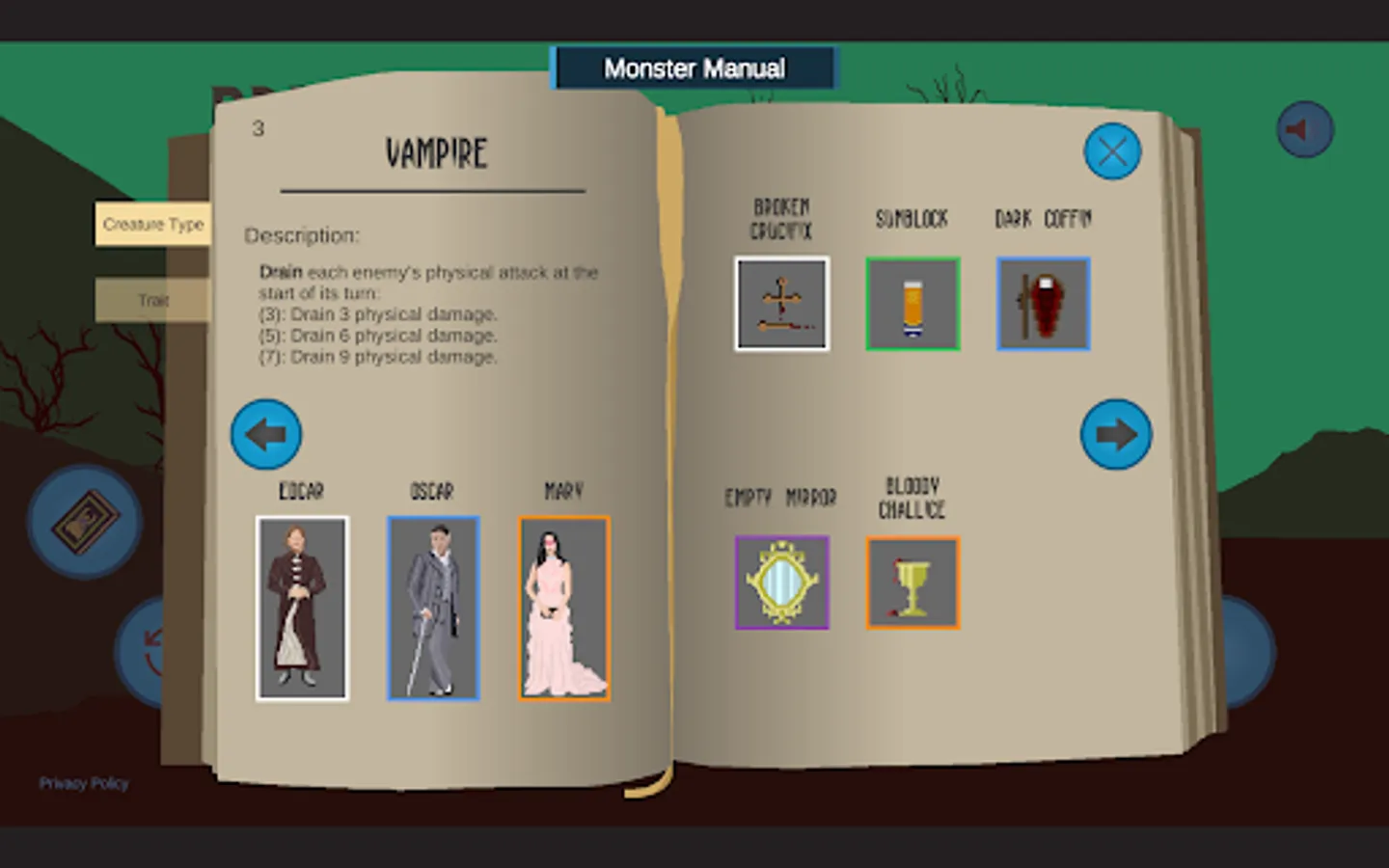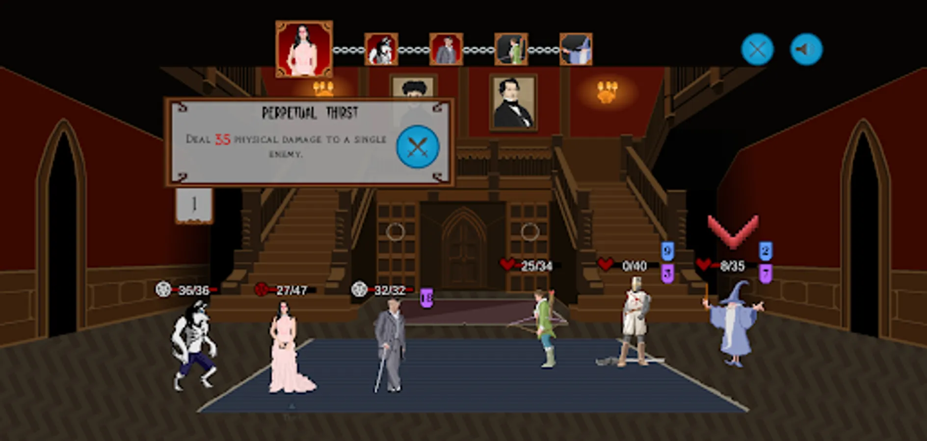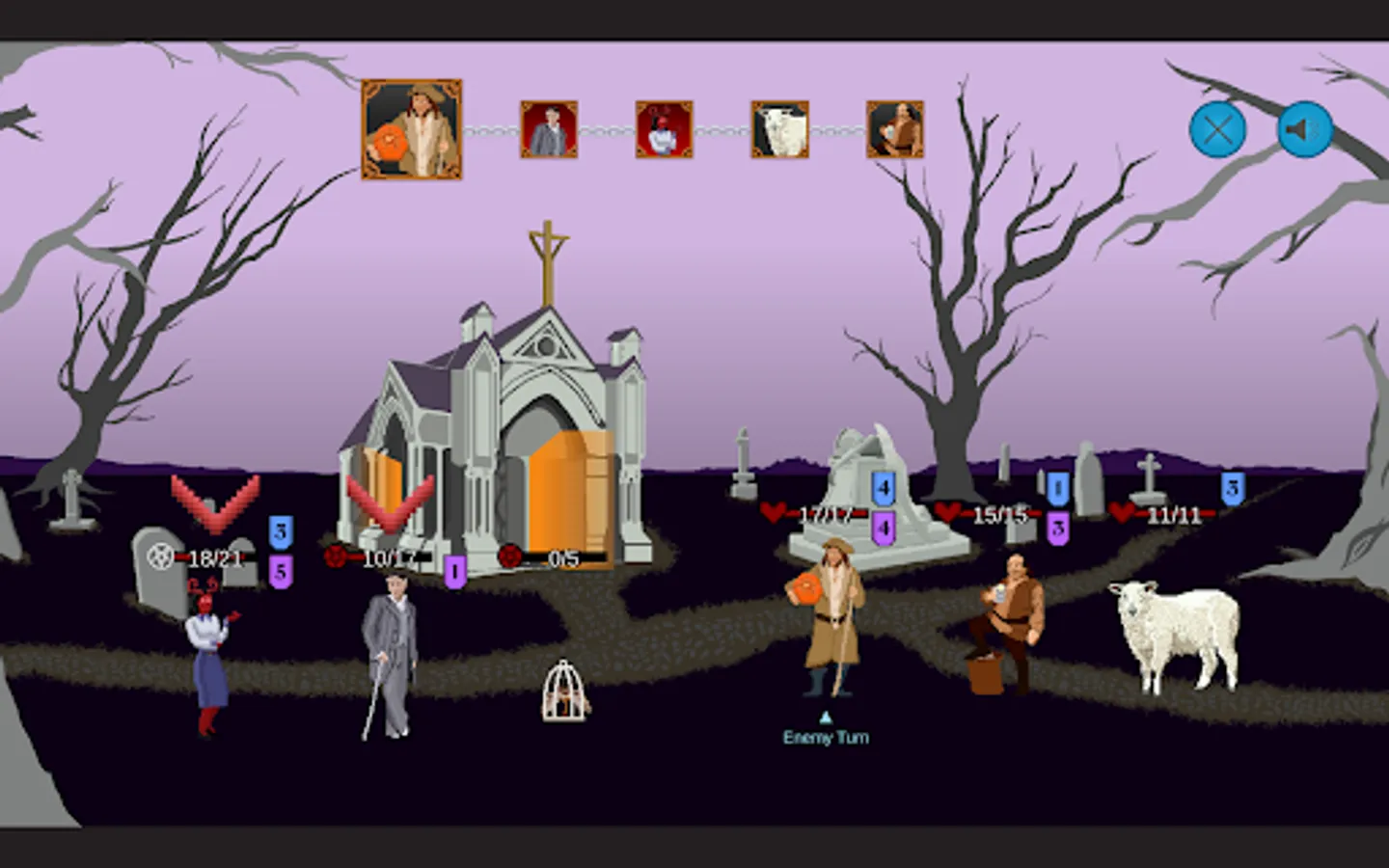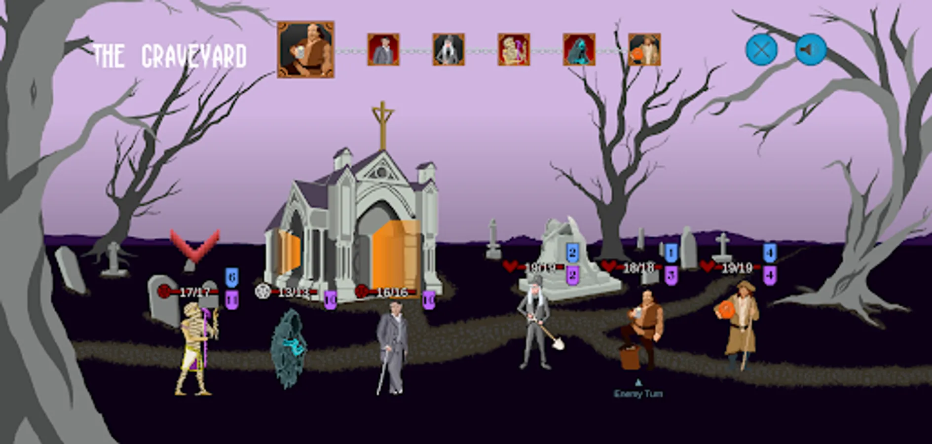 Enjoy zany pixel art and spooky sound effects as you command your dead through battles across classic gothic scenes such as a swamp, a graveyard, and a creepy mansion.
