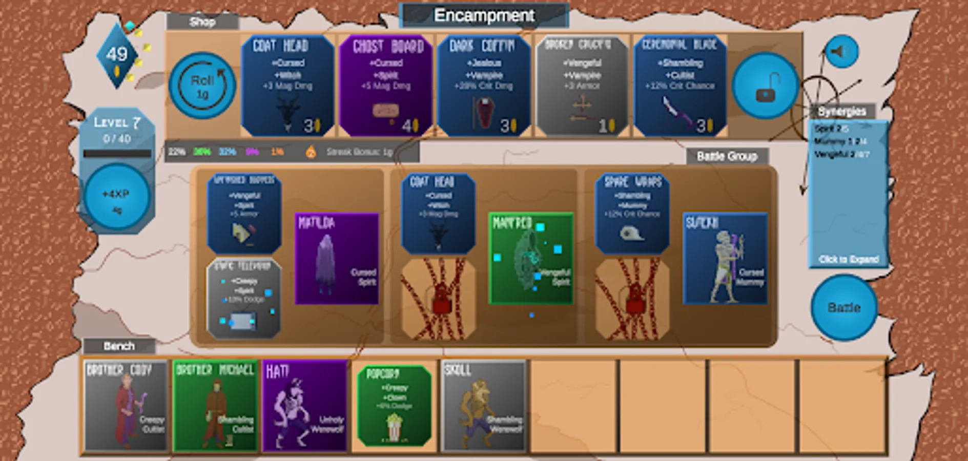 Assemble your team of monsters and spread darkness throughout the lands in Dread the Dead, a single-player strategy game.