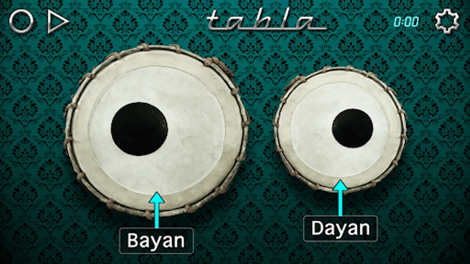 Tabla Drums is a virtual instrument for you to play two real drums called Tabla (or Dayan) and Duggi (or Bayan) that are similar to Darbuka or Tarabuka.